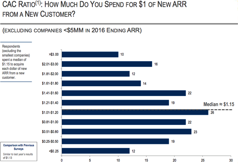 Was Salesforce’s aggressive spending an anomaly, was it just a function of a different time and place? Actually, it was not… To get a sense for CAC ratios for SaaS companies today, take a look at the Pacific Crest Securities 2017 Private SaaS Company Survey results to the left. You’ll see that the median CAC ratio is $1.15 for the ~200 SaaS companies surveyed. This number is up 2% from the previous years so high CAC ratios are not receiving a lot of downward pressure. Of course, there are companies with a CAC ratio <$1.00, but with the median at $1.15 and the 25th percentile at $1.65 spending more than a dollar for a dollar of revenue is clearly not the exception. So who is right? Will the companies spending more than $3.00 become icons of the industry, or are the companies that spend <$0.25 better off? If you ask the question only in the context of CAC ratios, you will often hear it said that SaaS companies should have a CAC ratio of $1.00 but does that mean we can declare the $1/$1 companies the winners? Are they the companies with the brightest future? The answer of course is… It depends. To gain better insight we need to look at another, you guessed it, financial ratio. It considers both LTV and CAC, namely the LTV to CAC ratio or LTV:CAC. Although there is no magic number that guarantees success, having an LTV:CAC ratio that is about 3, is a much better indicator of a healthy company than CAC alone. Using this ratio also provides insight as you move away from a ratio of 3. The assumptions regarding a deviation from 3 are fairly intuitive. If your LTV:CAC ratio is around 1, you’re burning capital. This can be a sign that your product is really hard to sell (not a good thing) or your customers don’t hang around for long (not a good thing either). Regardless of how you get to this number if your LTV:CAC ratio is ~1 you’re burning way too much capital and getting more may be really challenging. On the other hand, when you see an LTV:CAC ratio of 5, you’re probably loosing out on a growth opportunity. Clearly, the ideal situation would be one where your LTV is so healthy that you can afford to spend more aggressively to grow your customer base and your business. Although these ratios are obviously not the only numbers that matter, having a high LTV is clearly extremely important to your company. Since this is a fact, and because Customer Success drives LTV, your CS organization and its potential to impact the company’s financials, makes Customer Success extremely important too.